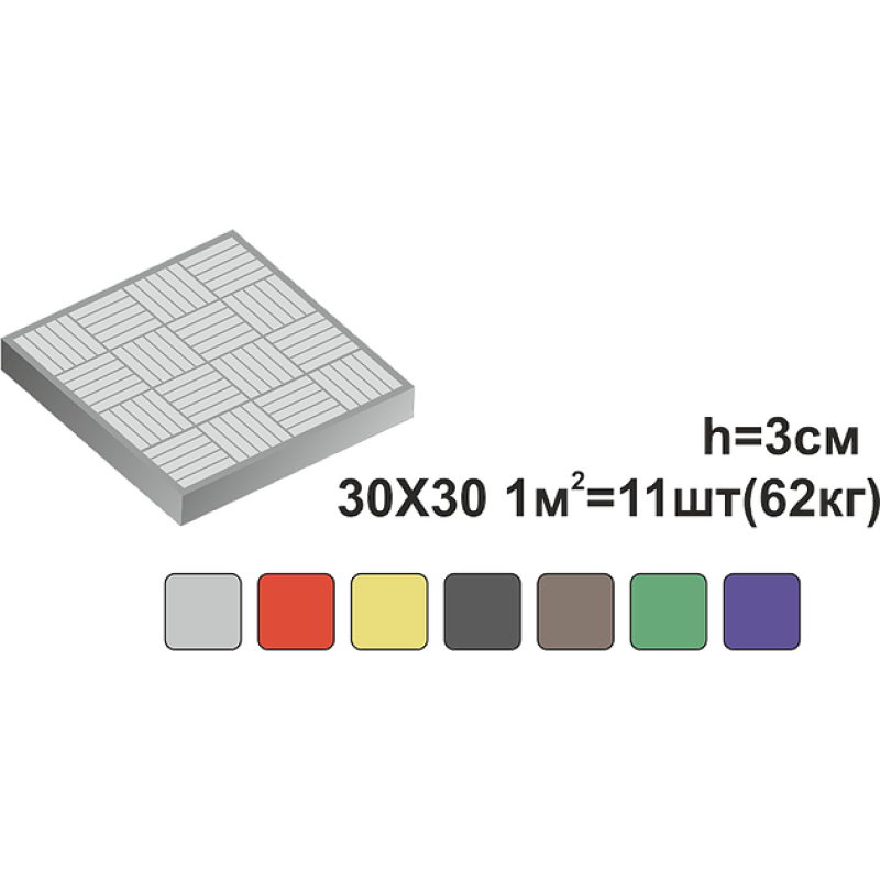 2. Тротуарна плитка Ромб. Розміри тротуарної плитки: висота h-4,5 см, 1 м2-30 комплектів, 1 м2-100 кг. Тротуарна плитка "Ромб" - це вид форми, що дозволяє створити не тільки вже відомі фігури, а й нові.
