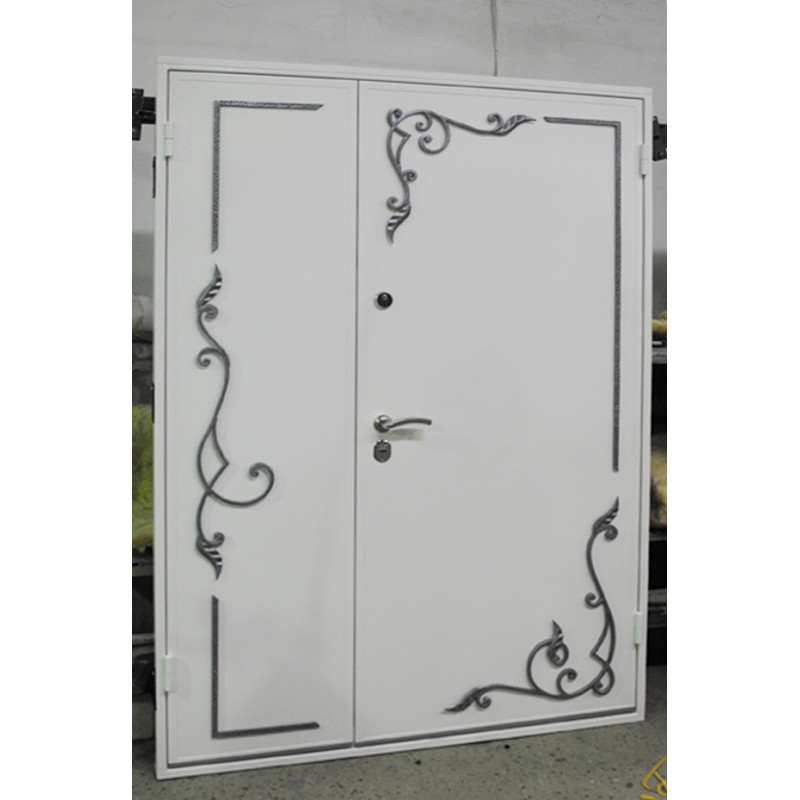 Металеві білі двері з кованими елементами