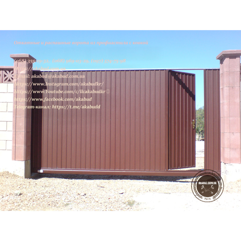 - Відкатні ворота з профлиста з хвірткою
