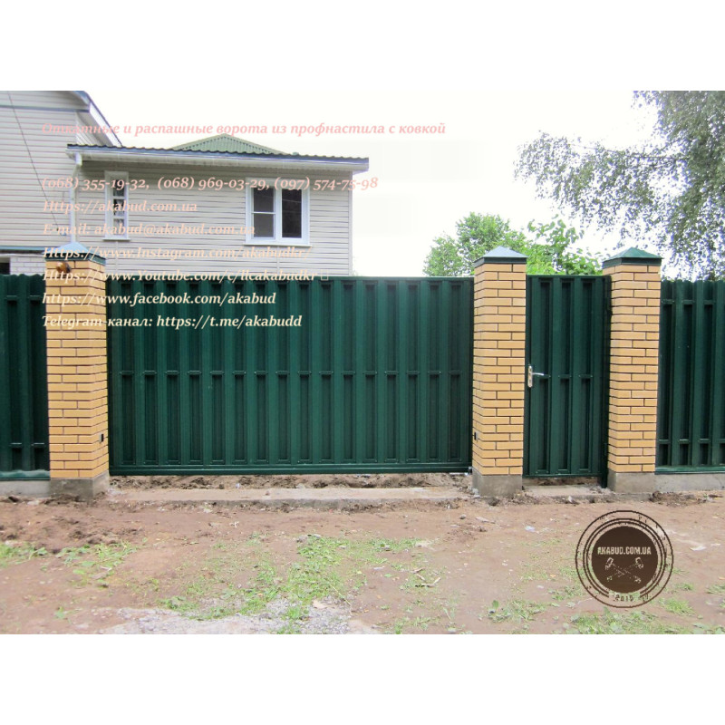 - Відкатні ворота з профнастилом та окремою хвірткою