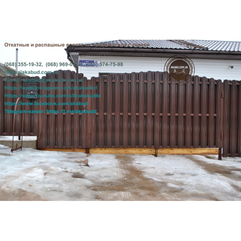 - Відкатні ворота з профнастилом та окремою хвірткою